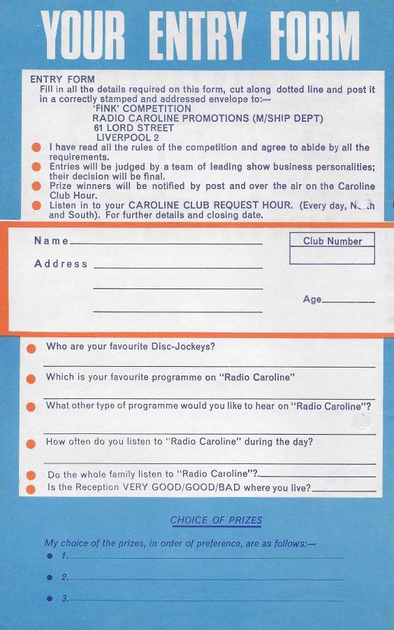Entry Form, rules and prize details for the ‘Fink’ Competition, 1966