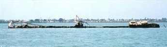 Above: A sad end - two views of the Cheeta 2 sinking in Bathurst harbour, Gambia